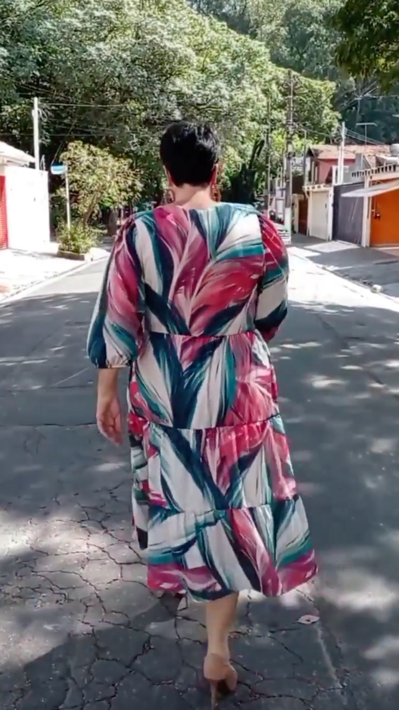 • Conforto e Fluidez: A viscose garante um tecido macio, respirável e com um caimento que se move lindamente com o corpo.